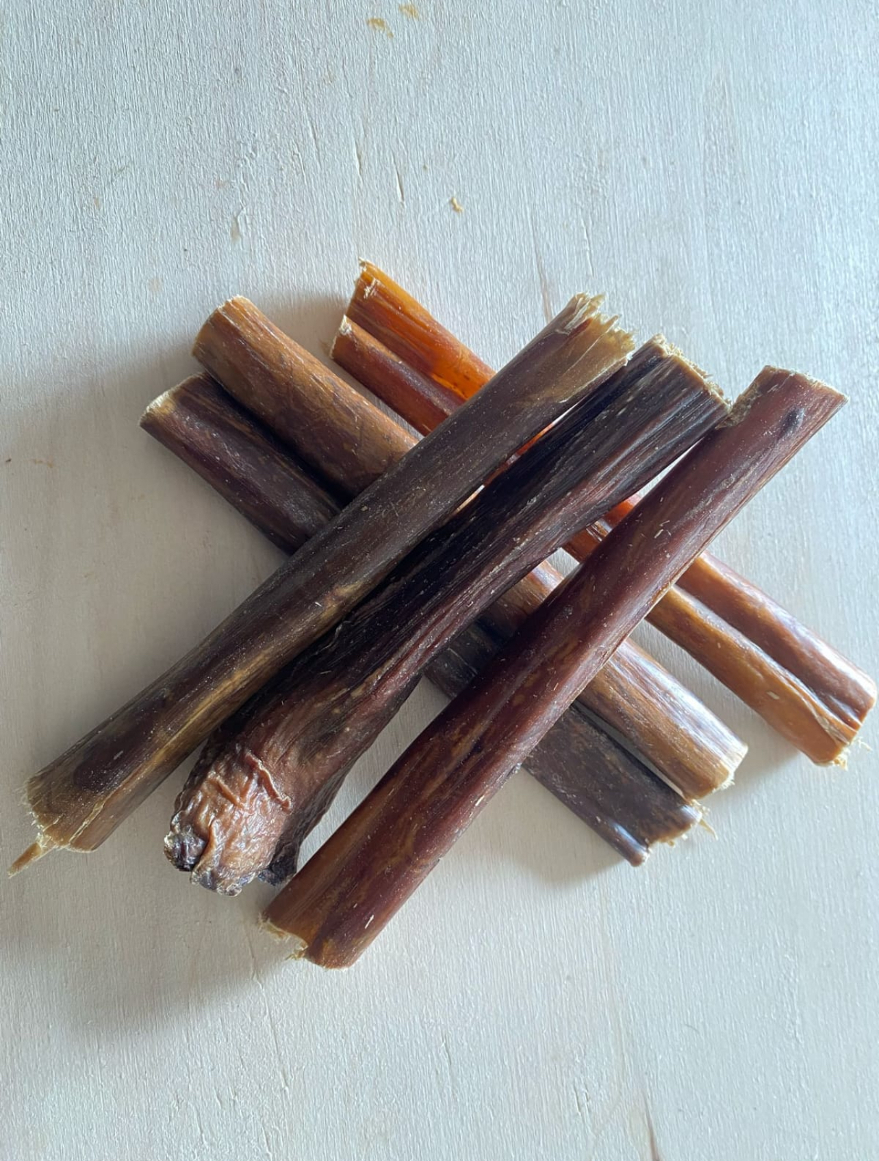 Snack natural de esófago de ternera para perros, ideal como recompensa crujiente, fácil de digerir y bajo en grasa.